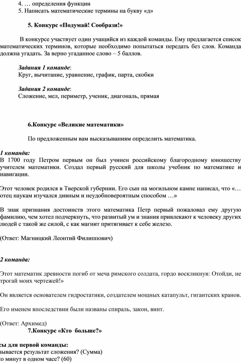 6.Конкурс «Великие математики»