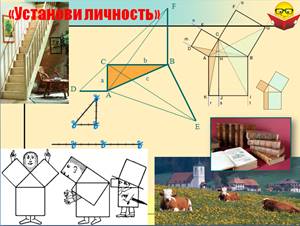 Древнегреческий ученый Пифагор учился в Египте, был одним из самых образованных людей своего времени. Двенадцать лет пробыл в вавилонском плену, после этого Пифагор создает собственную философскую школу. Пифагор учил медицине, принципам политической деятельности, астрономии, математике, музыке, этике и многому другому. Теорема Пифагора для прямоугольного треугольника имеет огромное значение. Она применяется в геометрии буквально на каждом шагу. Существует легенда о жертвоприношении Богам от Пифагора. Сто быков он отдал на закланье и сожженье за озарение. Существует около пятисот различных доказательств этой теоремы.