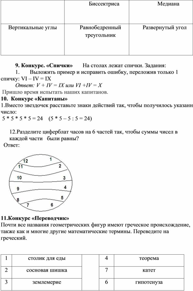 12.Разделите циферблат часов на 6 частей так, чтобы суммы чисел в каждой части были равны?