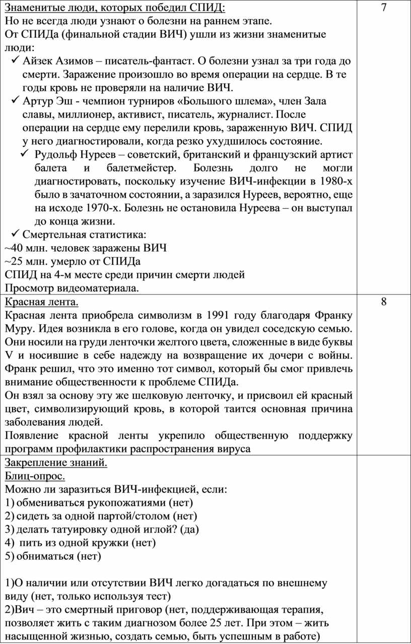 - дать элементарные представления о передаче ВИЧ-инфекции;