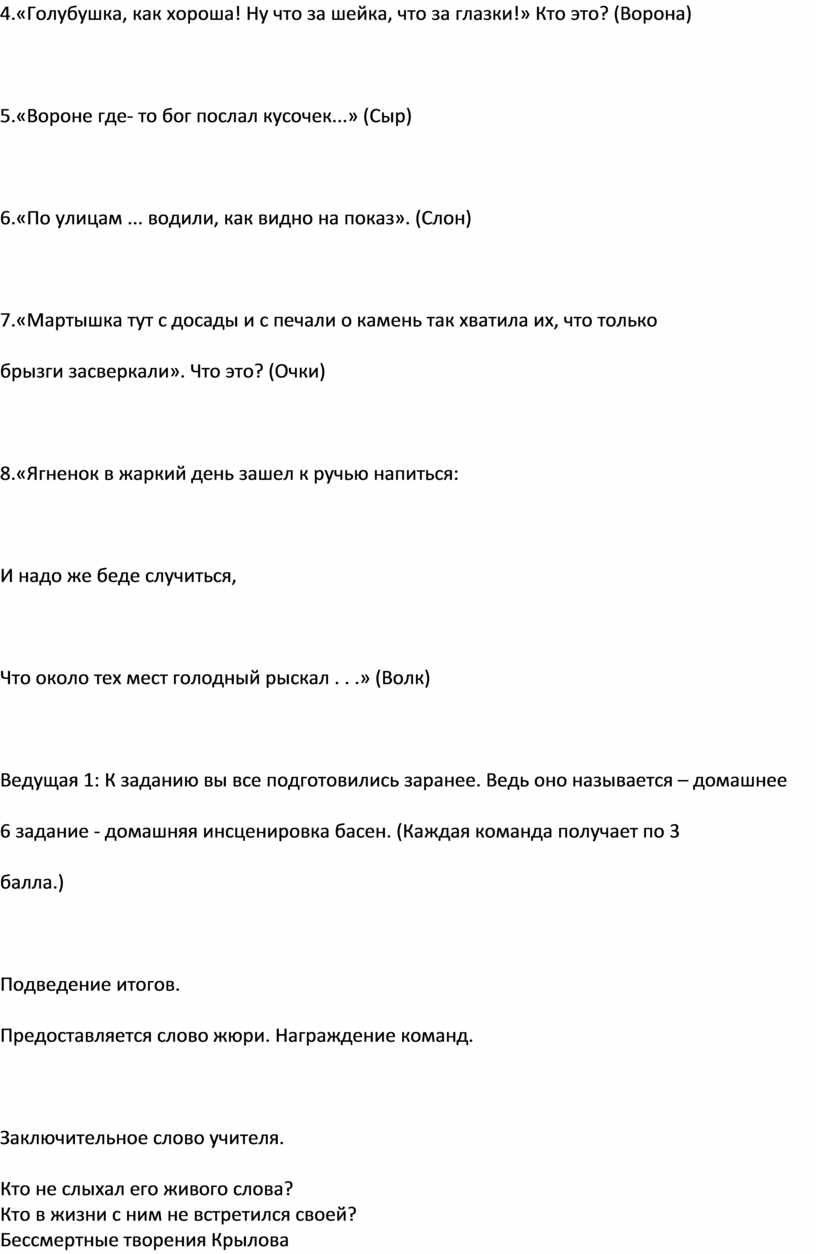 6 задание - домашняя инсценировка басен. (Каждая команда получает по 3