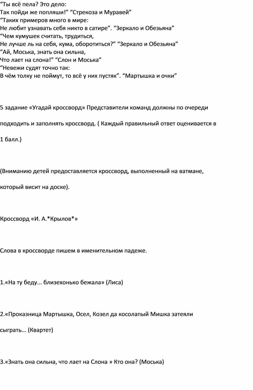 Внеклассное мероприятие, посвящённое писателю И.А. Крылову