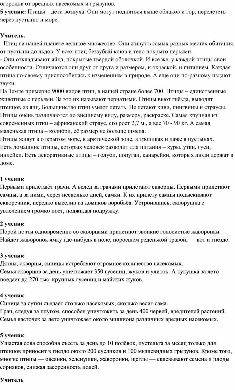Учитель: Кто же такие птицы? (читают по очереди дети)