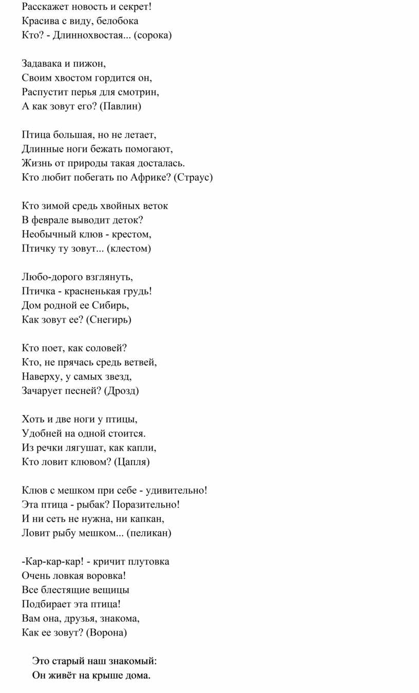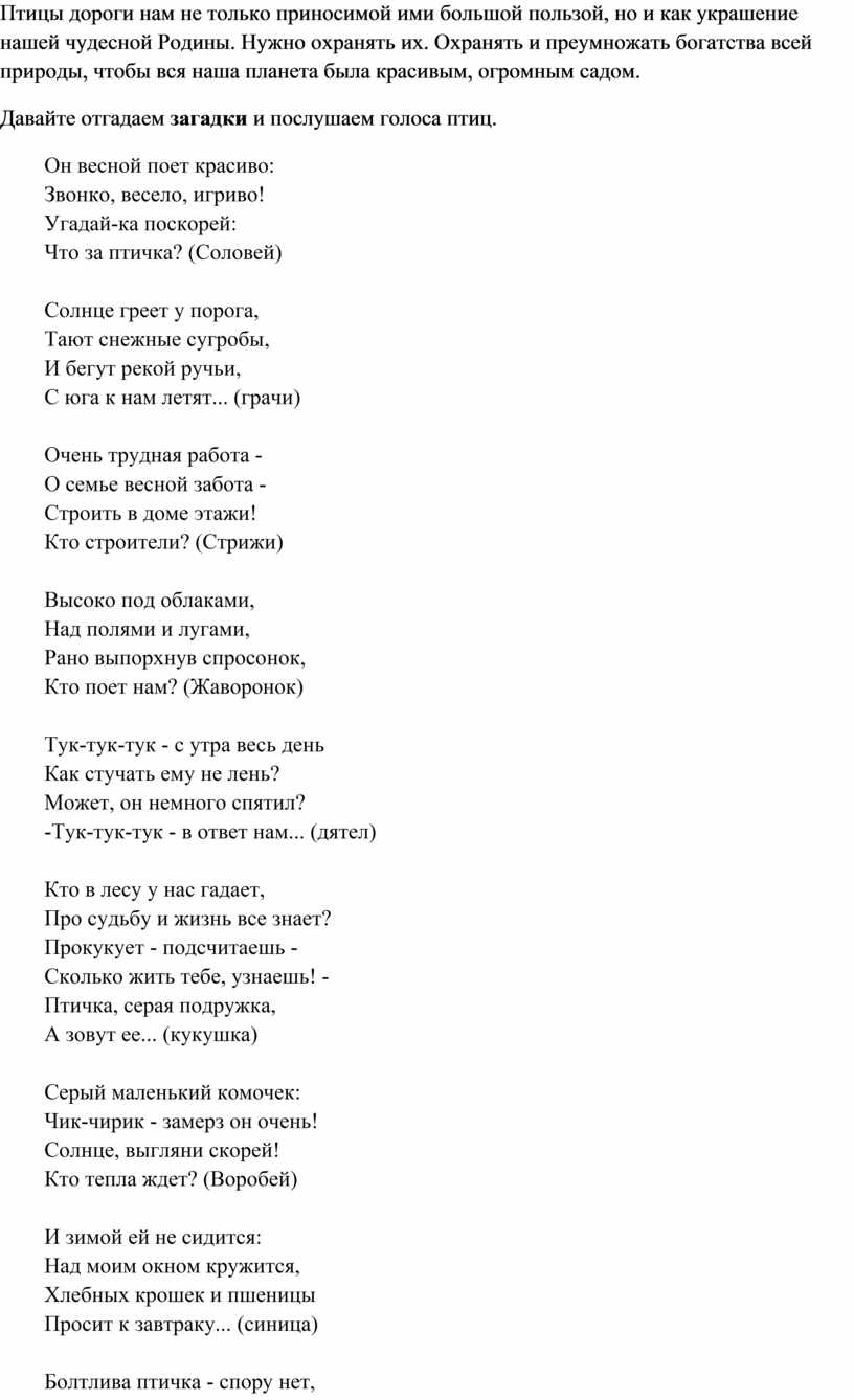 Давайте отгадаем загадки и послушаем голоса птиц.