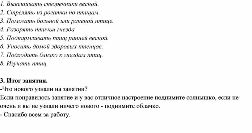 3. Воспитывать стремление заботиться о пернатых