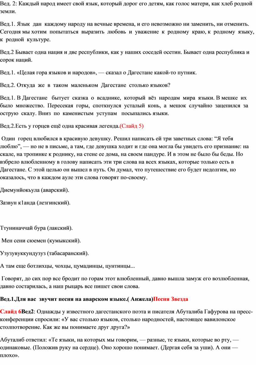 Вед.2.Первые слова, которые я услышал, были аварские.