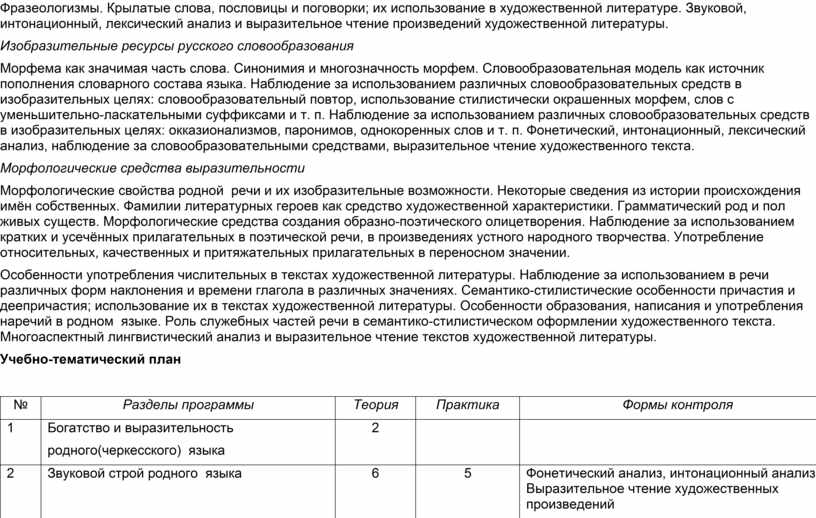 Программа предусматривает систематическое наблюдение за использованием разных языковых средств в лучших образцах художественной литературы, в которых наиболее полно проявляется изобразительно-выразительная сила родного языка. Многоаспектная языковая работа с литературными текстами позволит не только совершенствовать наиважнейшие речевые умения, но и сформировать элементарные навыки лингвистического анализа и выразительного чтения художественного произведения.