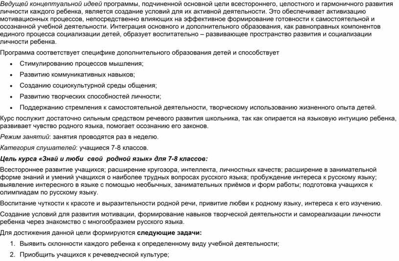 Педагогическая целесообразность данной образовательной программы обусловлена тем, что она воспитывает чуткость к красоте и выразительности родной речи, прививает любовь к родному языку, интерес к его изучению разными путями. Данная программа берет за основу один из них: знакомство с изобразительными возможностями родного языка в разных его проявлениях. Под этим углом зрения на занятиях рассматривается известный учащимся лингвистический материал и углубляются сведения по фонетике, лексике, словообразованию, грамматике и правописанию.