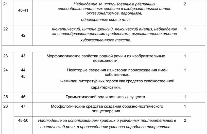 Морфологические свойства родной речи и их изобразительные возможности. Некоторые сведения из истории происхождения имён собственных. Фамилии литературных героев как средство художественной характеристики. Грамматический род и пол живых существ. Морфологические средства создания образно-поэтического олицетворения. Наблюдение за использованием кратких и усечённых прилагательных в поэтической речи, в произведениях устного народного творчества. Употребление относительных, качественных и притяжательных прилагательных в переносном значении.