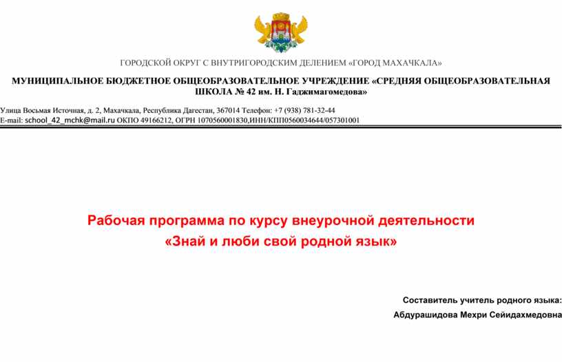 E-mail: school_42_mchk@mail.ru ОКПО 49166212, ОГРН 1070560001830,ИНН/КПП0560034644/057301001