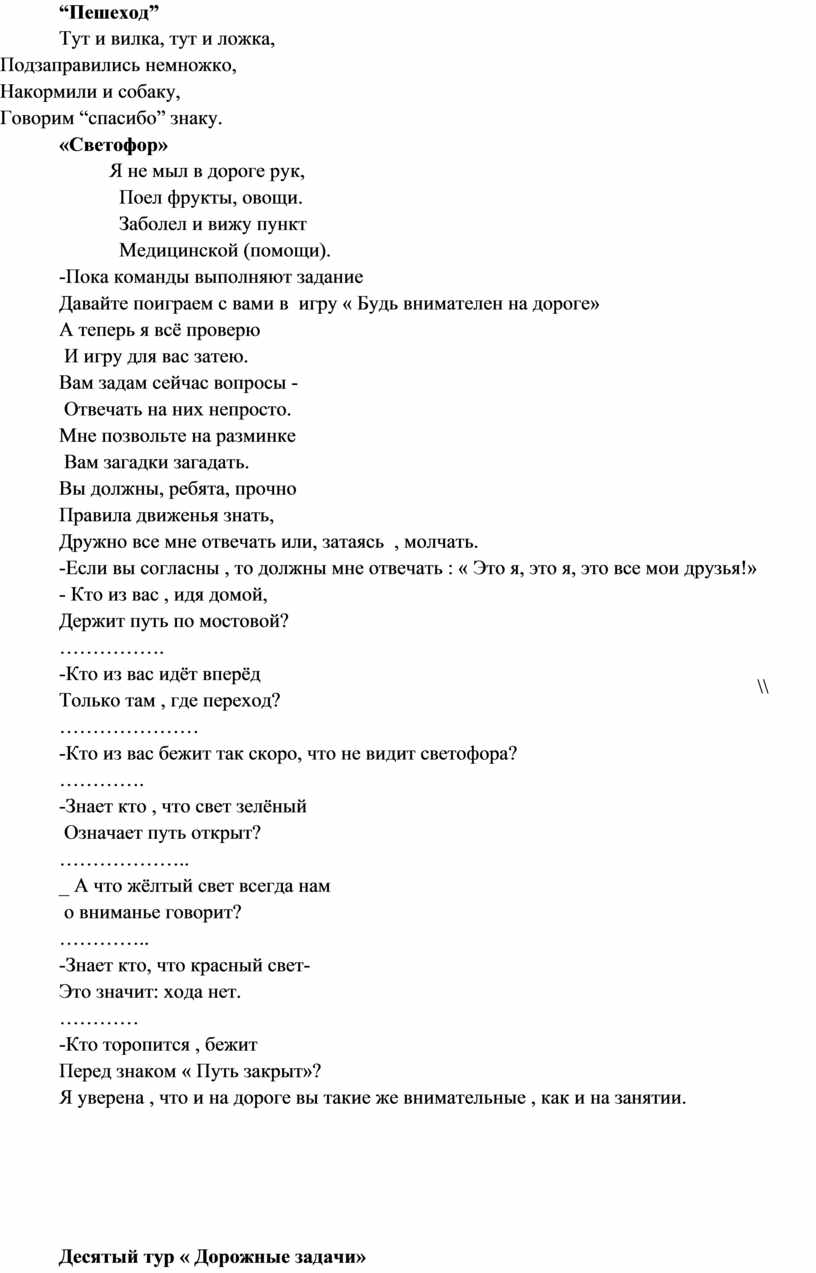 Десятый тур « Дорожные задачи»