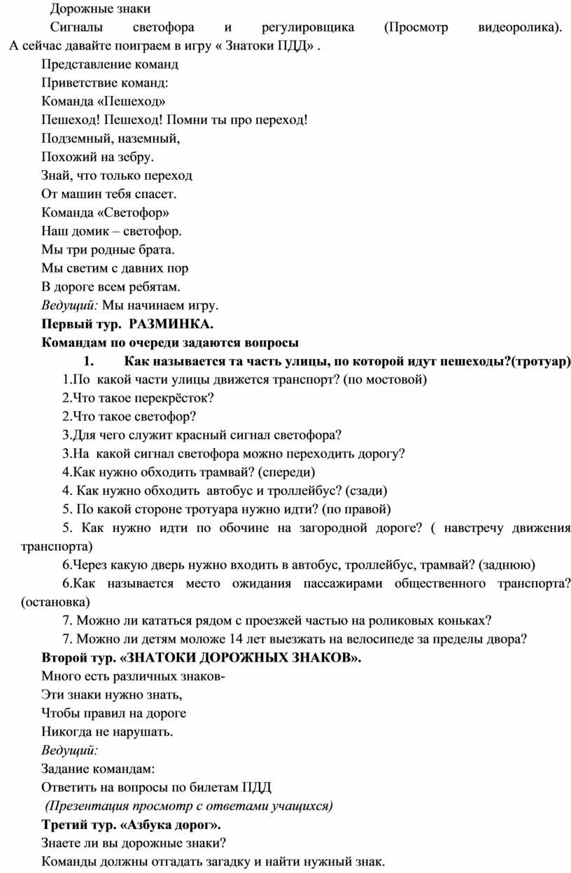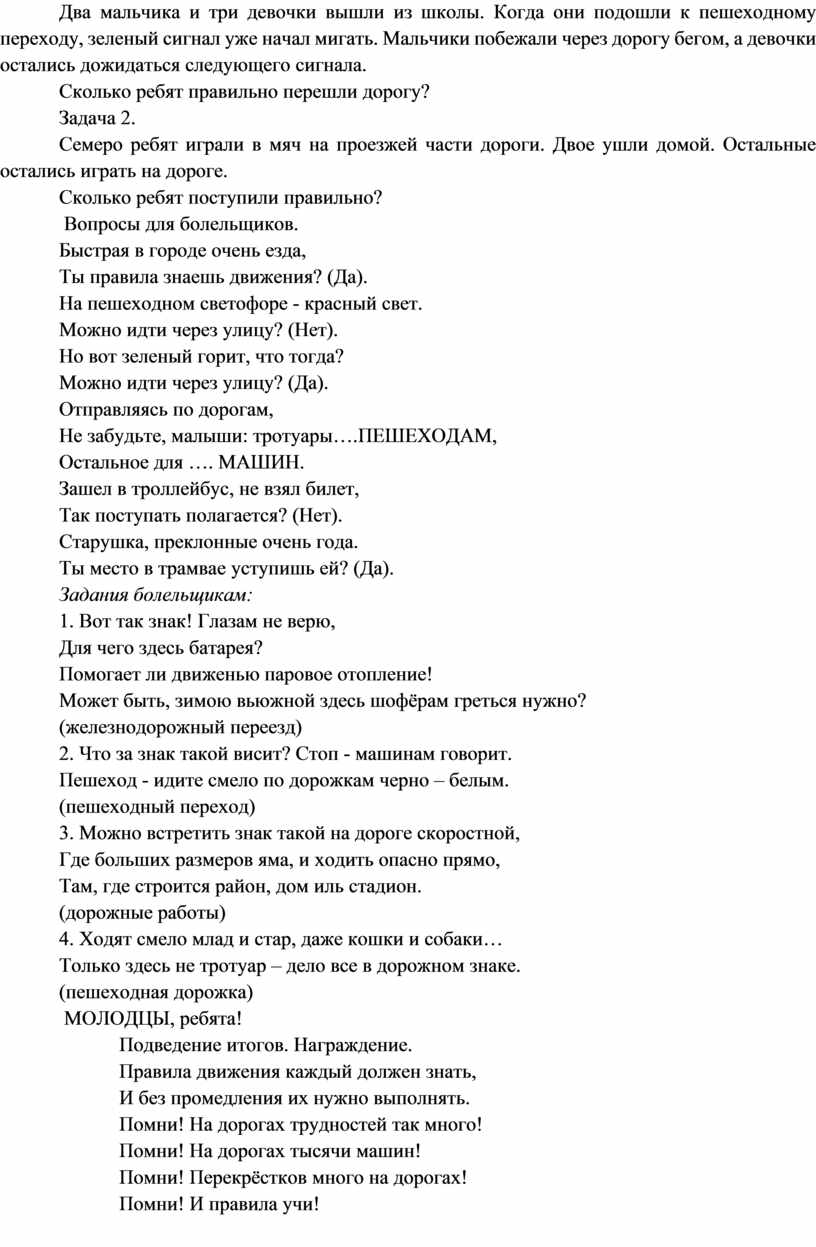 Ты правила знаешь движения? (Да).