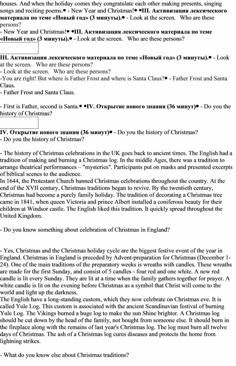 1. Практические: знакомство учеников с разницей Рождества в Великобритании и России.