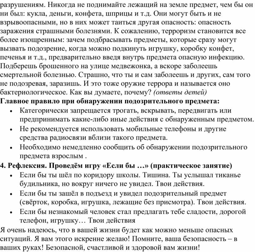 Внеклассное занятие «Осторожно! Подозрительный предмет»