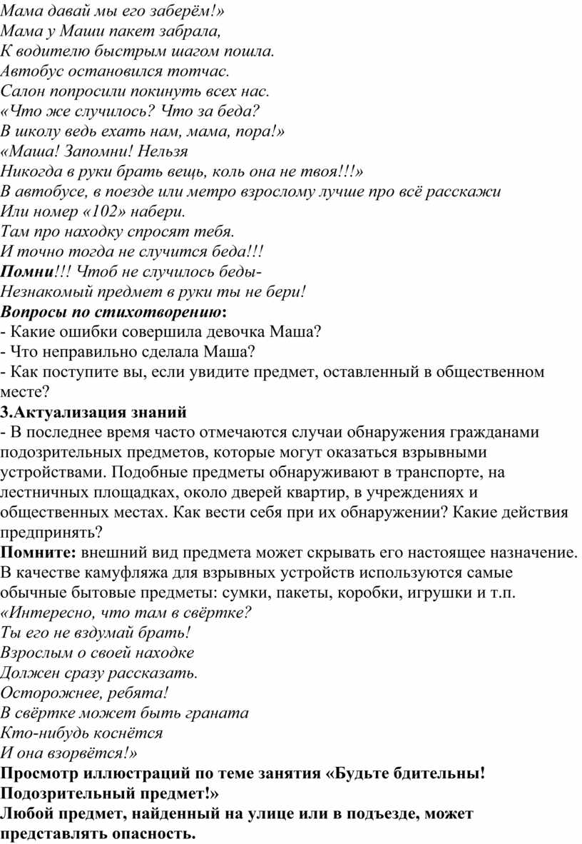 Просмотр иллюстраций по теме занятия «Будьте бдительны! Подозрительный предмет!»