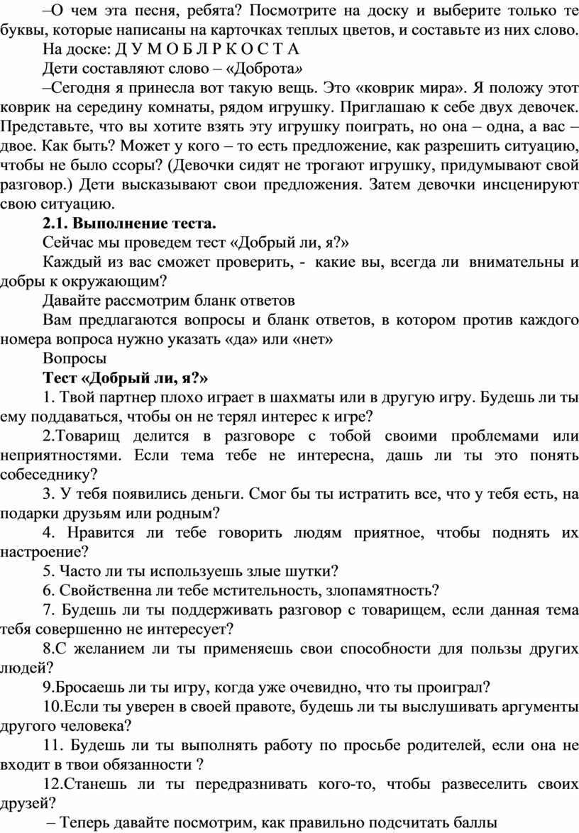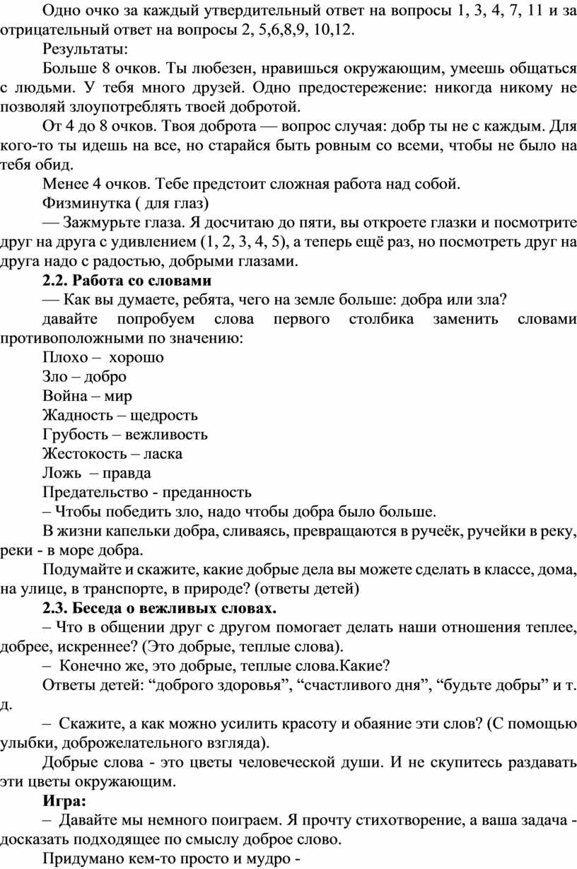2. Развивать представления детей о добре и зле, умение прислушиваться к себе и быть самокритичным, воспитывать стремление совершать добрые дела.