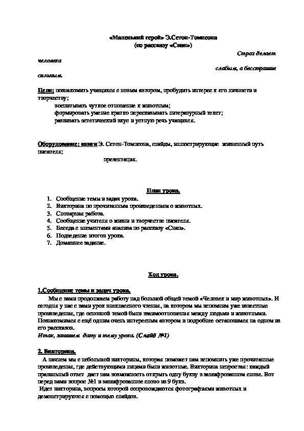 \«Маленький герой» Э.СетонТомпсона