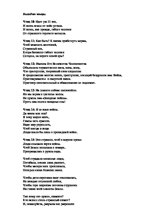Чтец 20: Войны не хотим мы нигде, никогда,