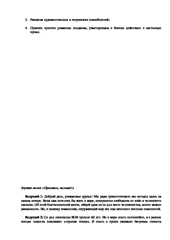 4. Привить чувство уважения солдатам, участвующим в боевых действиях в настоящее время.конспект
