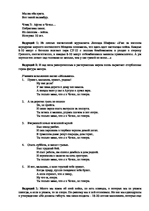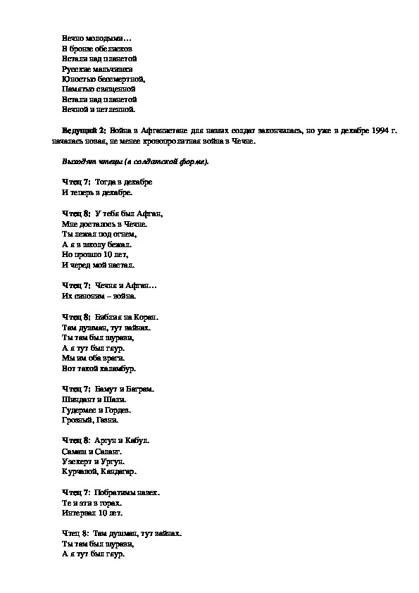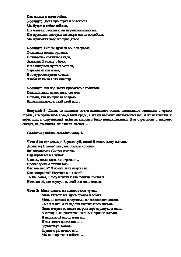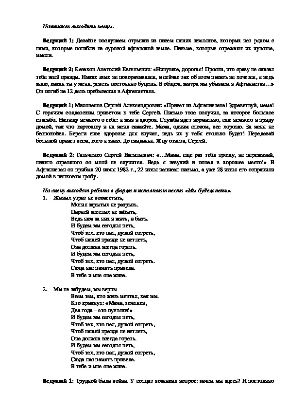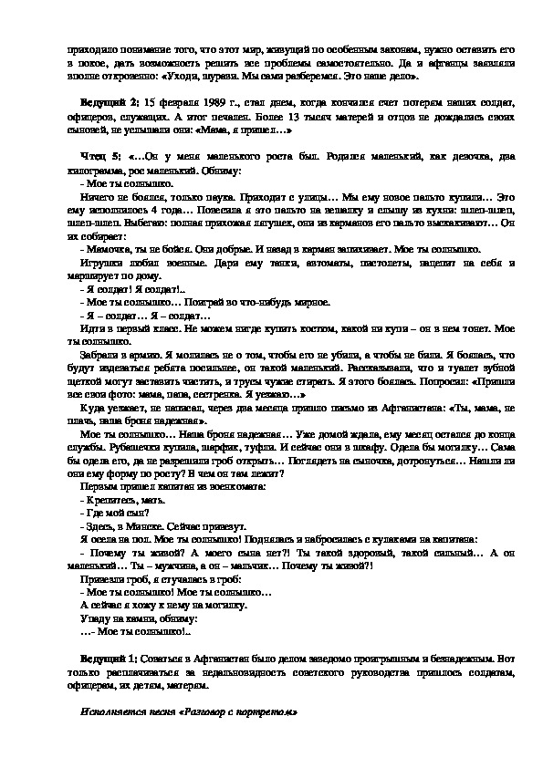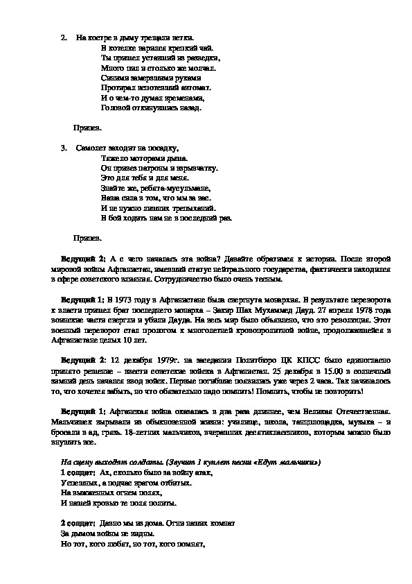 Ведущий 1: Одной из трагических страниц нашей истории стала война в Афганистане.