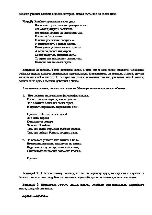 Ведущий 2: Со дня окончания ВОВ прошло 60 лет. Но в мире опять неспокойно, и в разных
