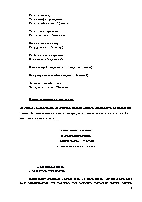 Ведущий: Сегодня, ребята, вы повторили правила пожарной безопасности, вспомнили, как