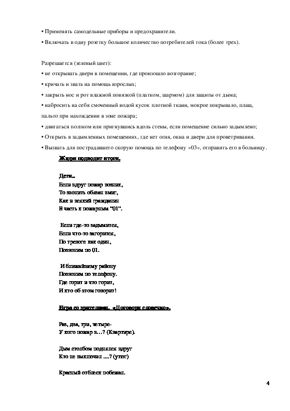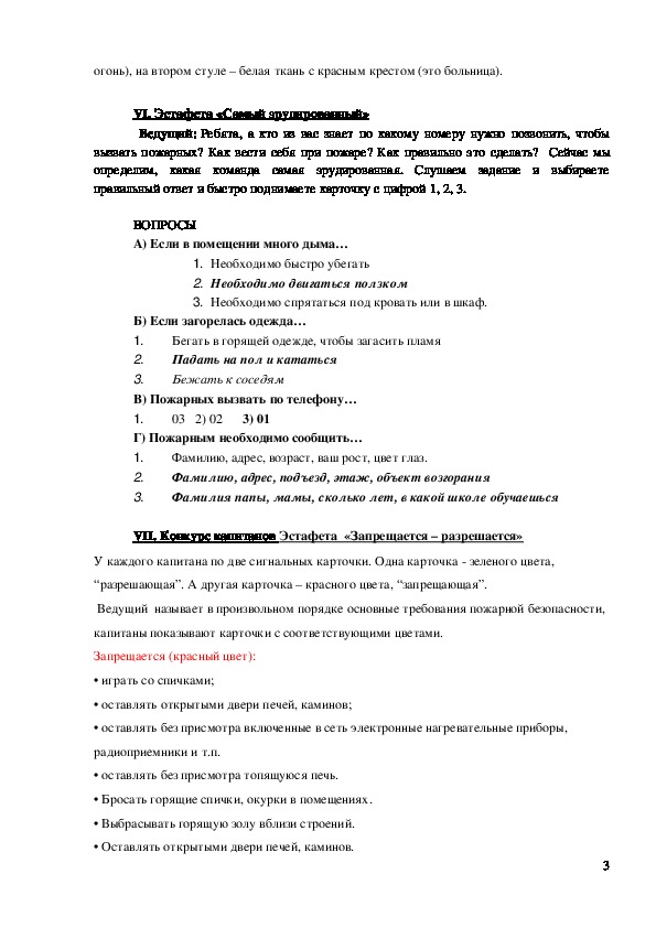 Ведущий называет в произвольном порядке основные требования пожарной безопасности,