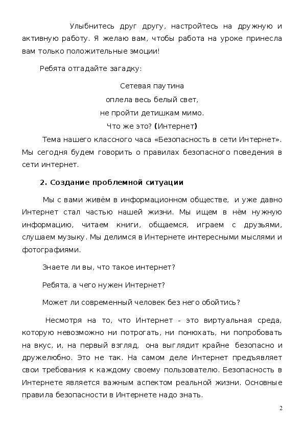 - Способствовать формированию навыков информационной культуры в сети Интернет.