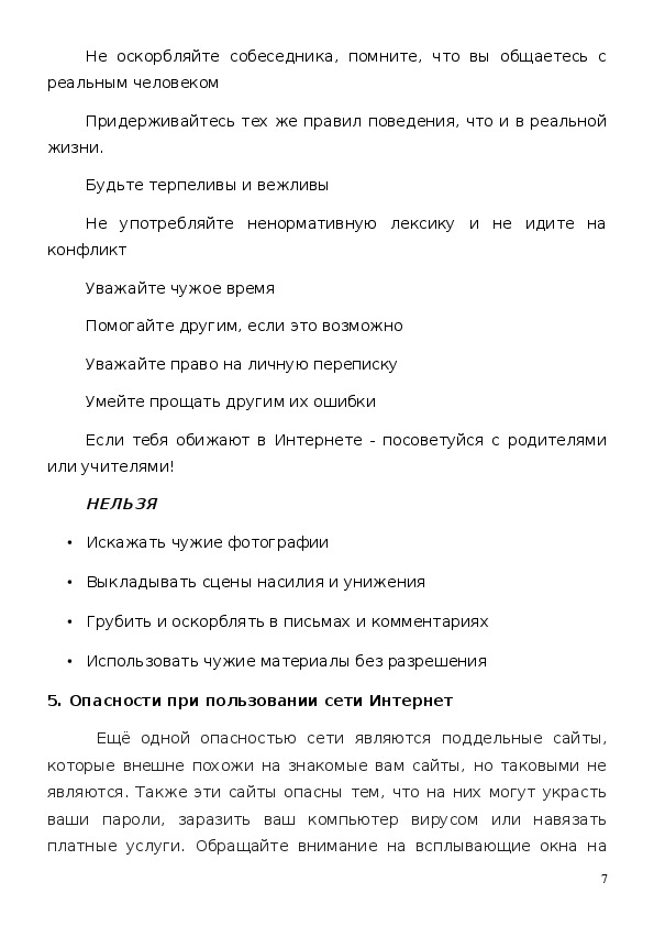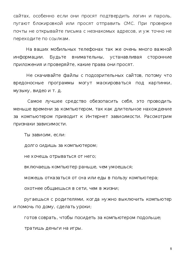 угрозах и опасностях при работе в сети Интернет, о вредоносных