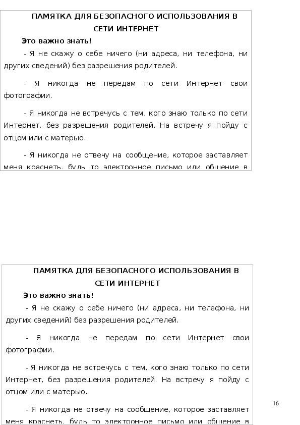 15ПАМЯТКА ДЛЯ БЕЗОПАСНОГО ИСПОЛЬЗОВАНИЯ В