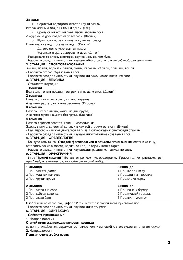 2. СТАНЦИЯ – СЛОВООБРАЗОВАНИЕ