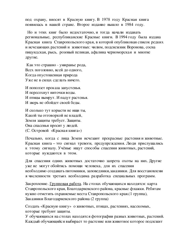 новое об исчезающих видах животных и растений и предлагают взять ихпод охрану, вносят в Красную книгу. В 1978 году Красная книга
