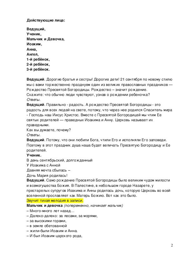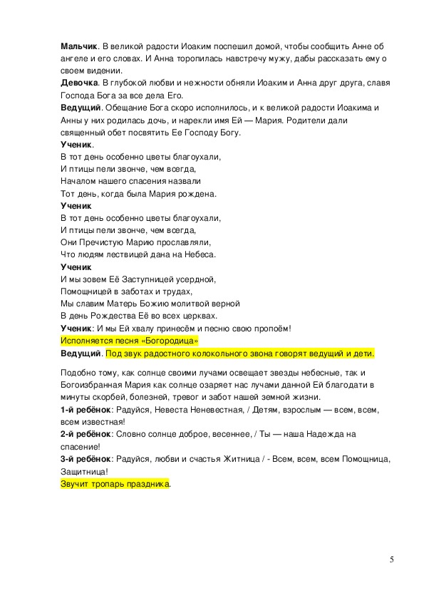 Услышь мольбу! Пошли и нам дитя!Внеклассное мероприятие "Рождество Пресвятой Богородицы"