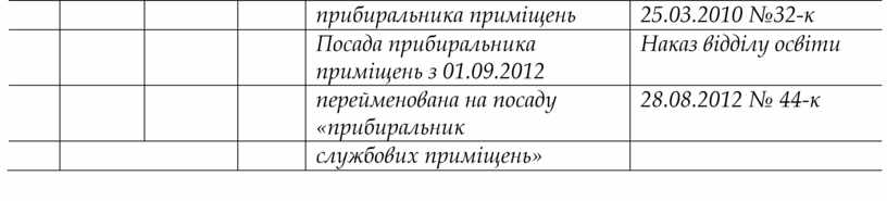 2. Секретарю-друкарці Гаврилюк О. І. до 01.09.2012 внести у трудових книжках працівників школи, які обіймають посади, зазначені в пунктах 1.1. та 1.2. наказу, записи про перейменування посад.