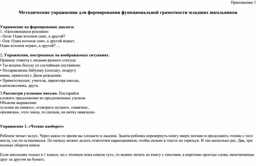 Методические упражнения для формирования функциональной грамотности младших школьников