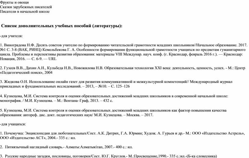 6. Сергеев Б.Ф., Томилин А.Н. Большая энциклопедия начальной школы. Вопрос-ответ.- М.:ЗАО «ОЛМА Медиа Групп», 2011.- 208 с.