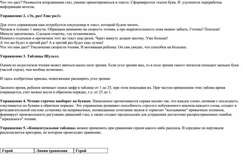 Упражнение 5. «Концептуальная таблица» можно применить при сравнении героев какого-либо рассказа. В середине по вертикали располагаются критерии, по которым происходит сравнение.