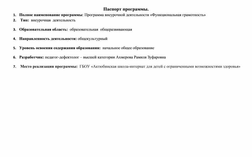 1. Полное наименование программы: Программа внеурочной деятельности «Функциональная грамотность»