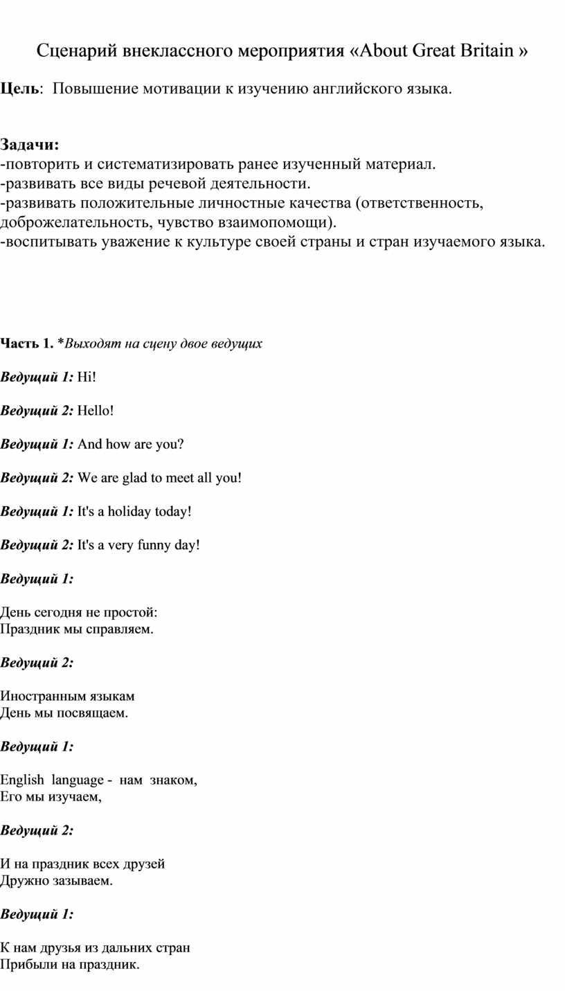 Ведущий 2: Ребята, а сейчас мы с вами проведём небольшую викторину о Великобритании..