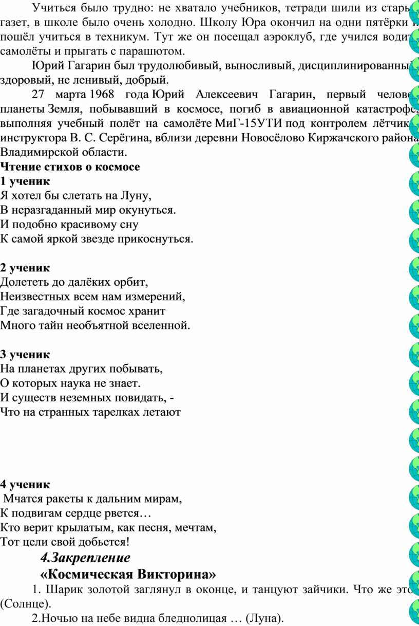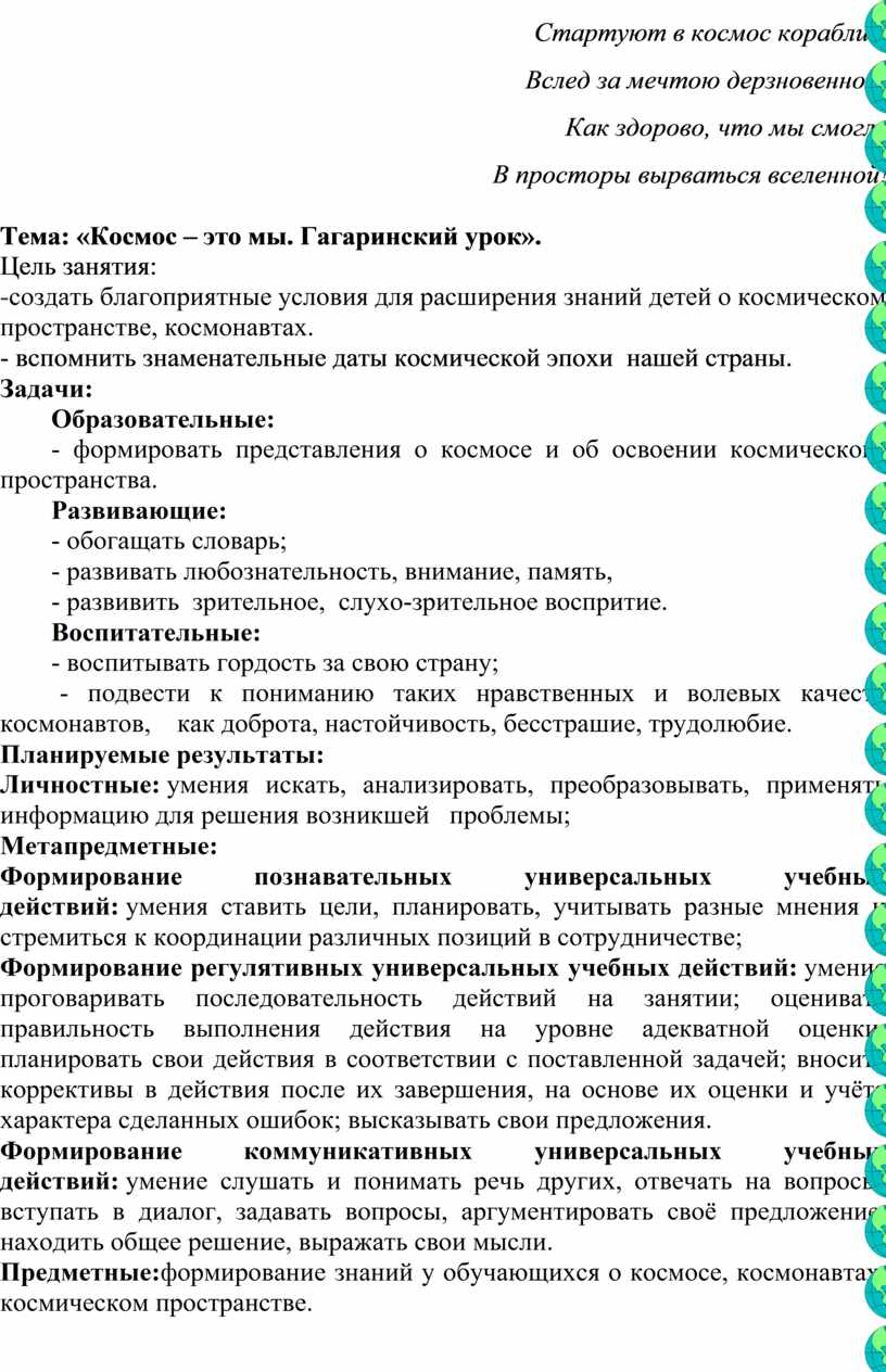 Тема: «Космос – это мы. Гагаринский урок».