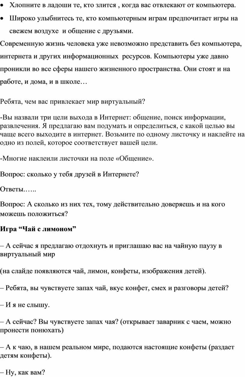– Ребята, вы чувствуете запах чай, вкус конфет, смех и разговоры детей?
