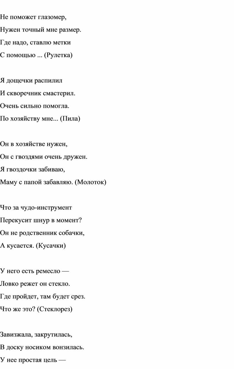 Загадки про папины инструменты: