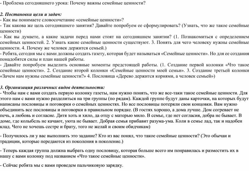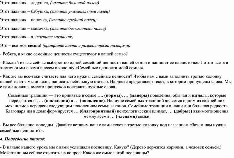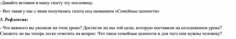 - Вы все большие молодцы! Давайте вставим наш с вами текст в третью колонку под названием «Зачем нам нужны семейные ценности?».