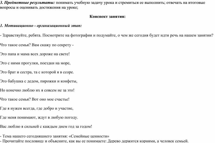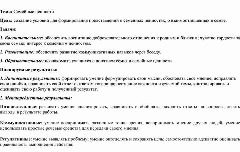 3. Образовательные: познакомить учащихся с понятием семья и семейные ценности.
