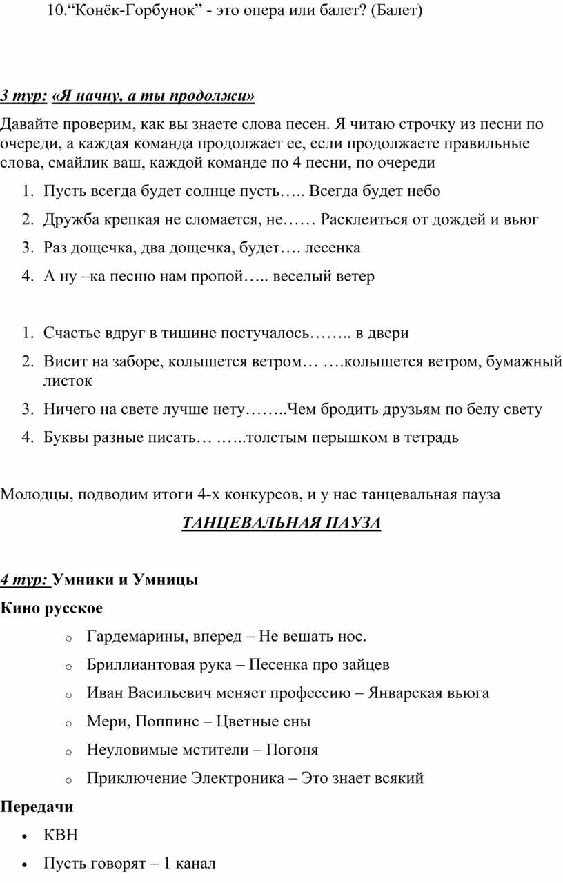 Давайте проверим, как вы знаете слова песен. Я читаю строчку из песни по очереди, а каждая команда продолжает ее, если продолжаете правильные слова, смайлик ваш, каждой команде по 4 песни, по очереди