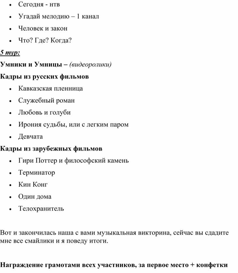 Вот и закончилась наша с вами музыкальная викторина, сейчас вы сдадите мне все смайлики и я поведу итоги.
