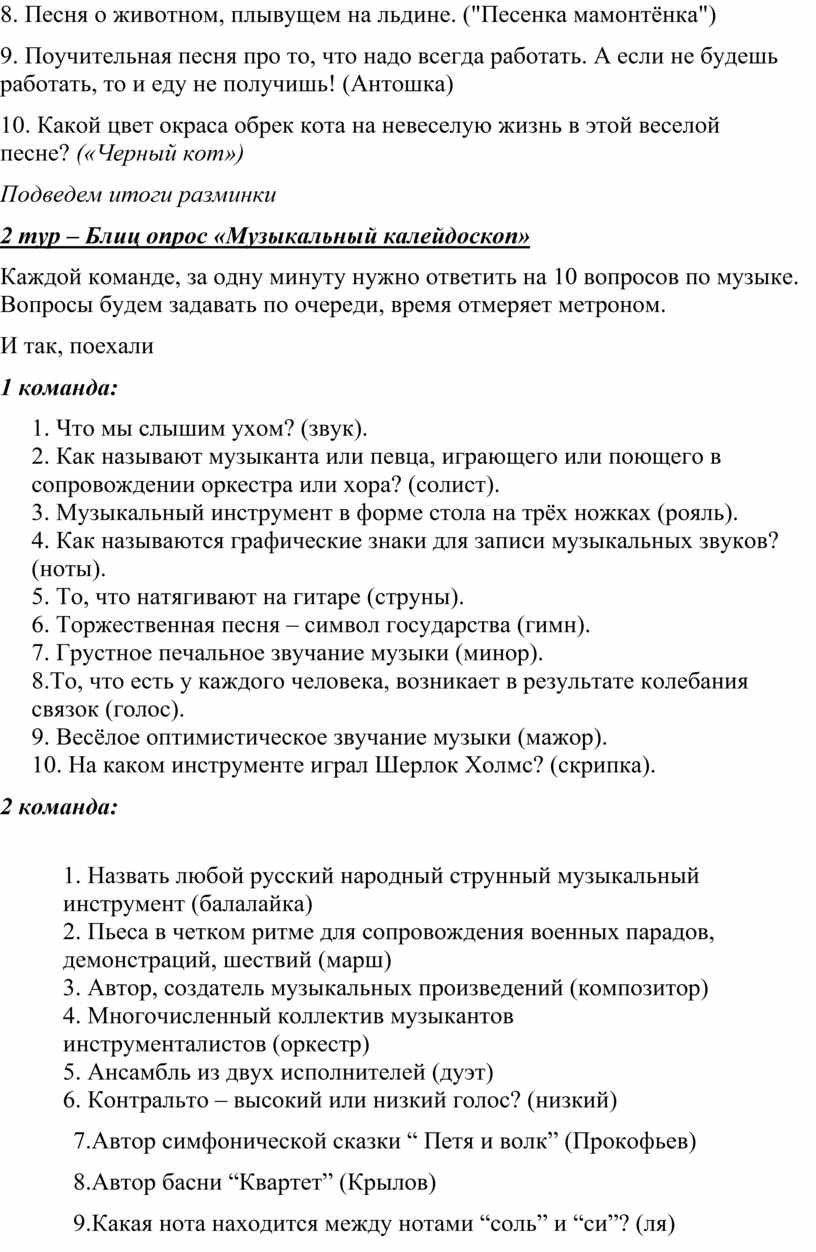 2 тур – Блиц опрос «Музыкальный калейдоскоп»