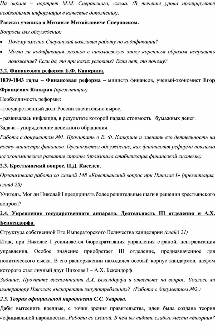 Работа с документом №1. Прочитать о Е. Ф. Канкрине и оценить его деятельность на посту министра финансов. Организуется обсуждение, как финансовая реформа повлияла на экономическое развитие страны (произошла стабилизация финансовой системы).