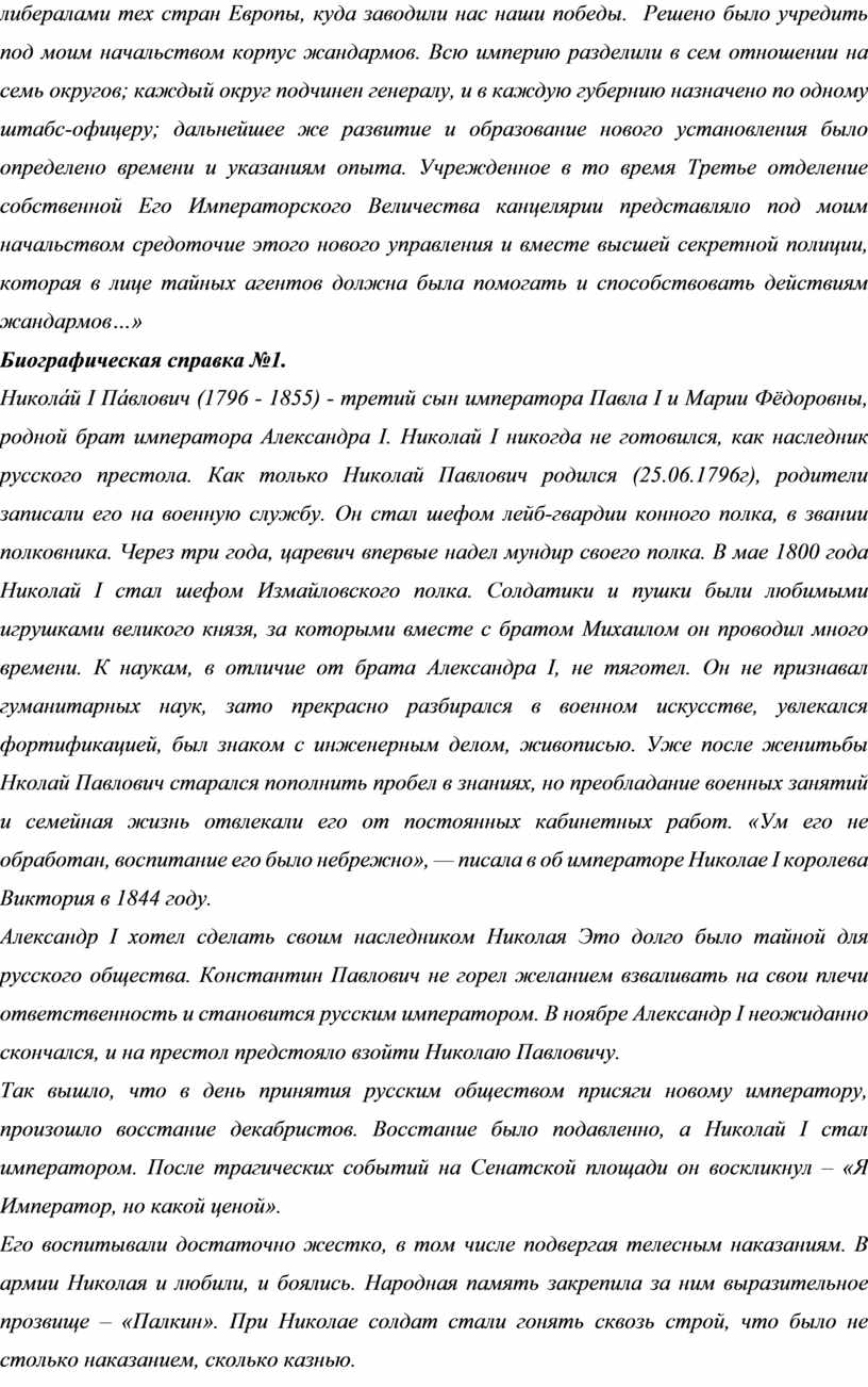 Проанализируйте высказывания о Николае 1 и определите, какой из этих текстов наиболее полно отвечает вашим представлениям о личности и деятельности российского императора.