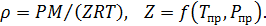 При підвищених тисках густина газів може бути розрахована з урахуванням коефіцієнта стискальності Z, що визначається як функція (представляється звичайно графічною залежністю) від приведених температури Tпр і тиску Рпр: